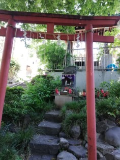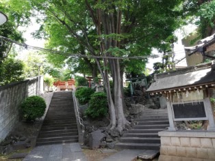 | 2つ目の鳥居の先は二手に分かれる。右は富士塚に築かれた富士浅間社と三峰社。 左手上が八幡神社。 | こちらが三峯社。 |