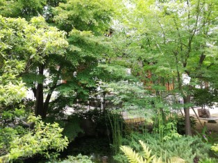 | 墓地の一番高いところはお寺の屋根くらいまである。勢至堂は昔、この墓地のある場所に立っていた。 | 境内は狭いが小さな池があって、ちょっとした庭園の風情。 |